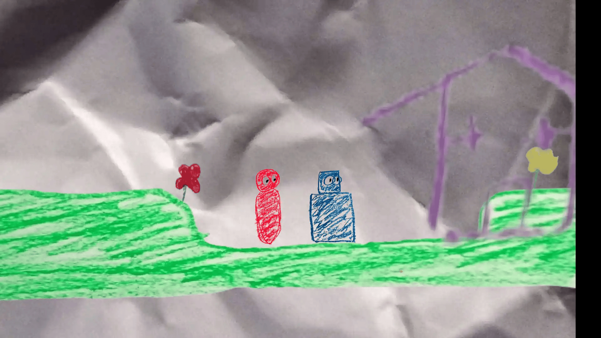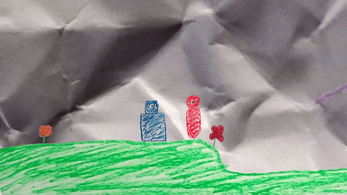 Hand-drawn crayon-style art